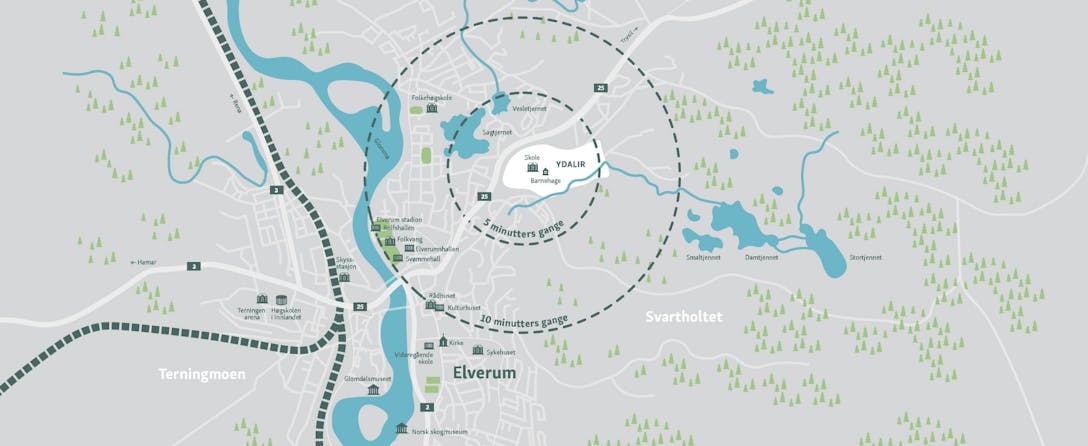 Ydalir er Elverums nye bydel. Bygd for å ta mest mulig hensyn til jorda vår. Samtidig skal det være et trivelig sted å bo.