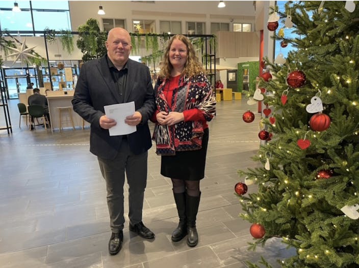 Universitetsrektor Peer Jacob Svenkerud og prosjektleder Sylvia Brustad i Norsk senter for beredskap og helseindustri kan snart ta juleferie, etter at en samarbeidsavtale mellom partene er signert denne uka.