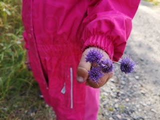 Woods fikk bli med en ivrig gjeng ut på tur til en liten klatrepark i skogen ikke langt fra barnehagen. Her balanserte barna på planker, spiste blåbær, så ekorn og plukket blomster. For små barn er det kanskje ikke så lett å si hva det er som gjør at de har det bra, men det er lett å se at de koser seg på tur i skogen.