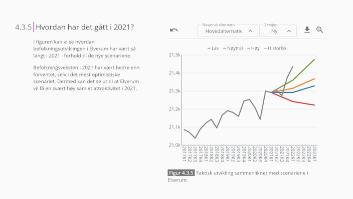 Befolkningsutviklingen er også høyere enn scenarioene som Telemarksforskningen har utarbeida og prognosene til SSB. Faktisk vekst er altså bedre enn alle spådommer. Alle pilene peker for øyeblikket oppover.