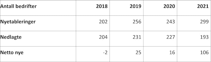 Elverum Vekst har blant annet ansvaret for å følge opp de som ønsker å starte bedrift i Elverum. Vi har også et ønske om å skape en sterkere etablererkultur. I 2021 var det 299 nyetablerte bedrifter i Elverum mot 243 året før. Nedlagte bedrifter har sunket fra 227 i 2020 til 193 i 2021.